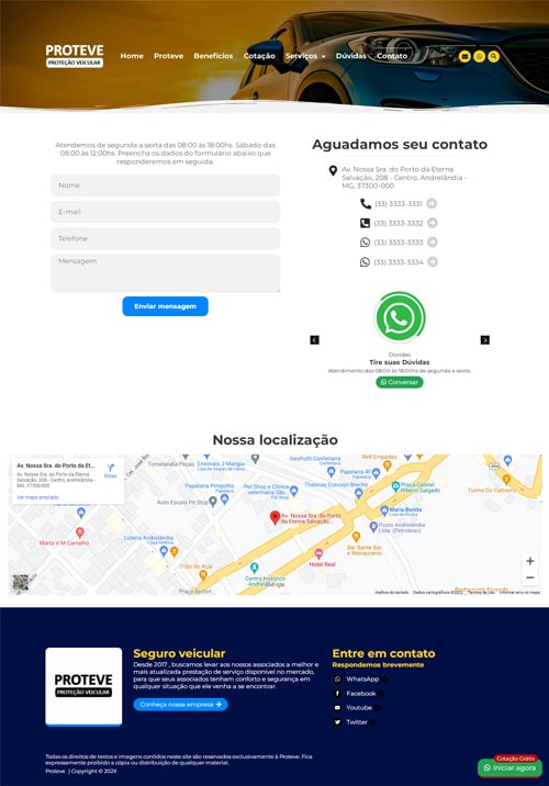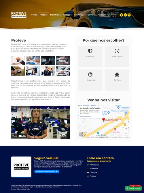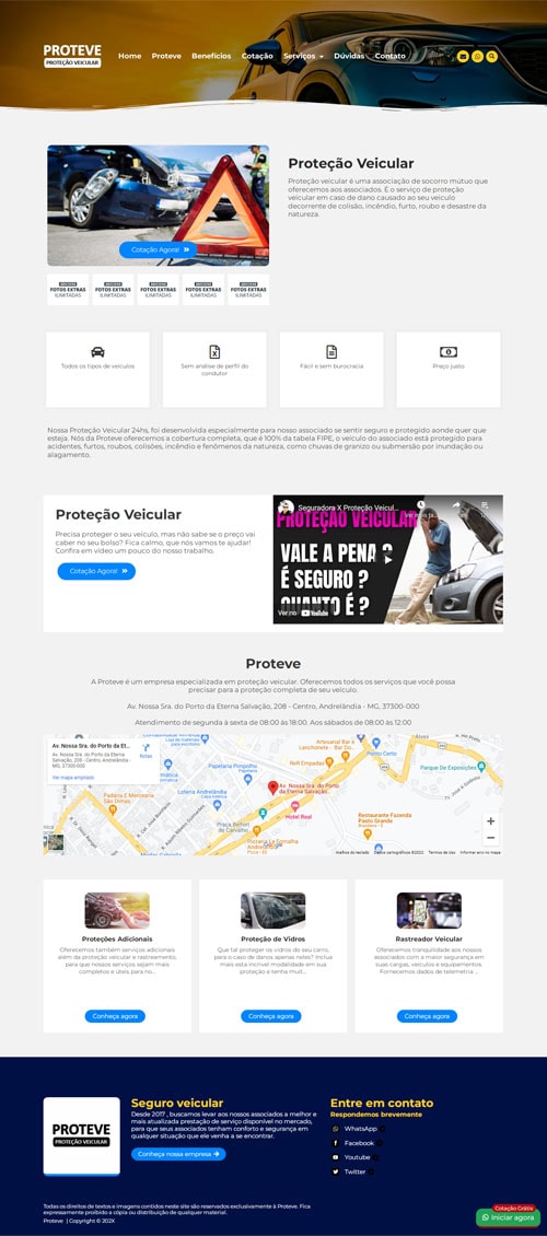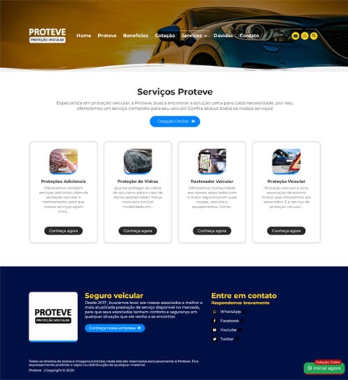 Interface desktop do site Automovel 02 para Proteção Veicular com destaque para cotação rápida.