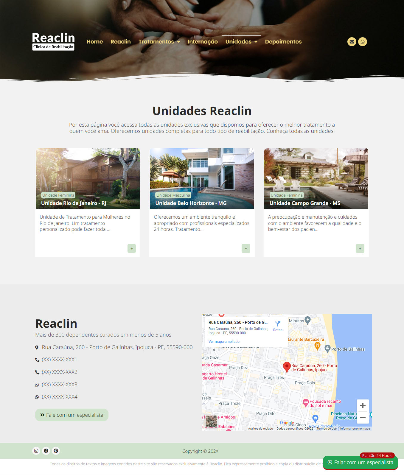 Clinica 01 - Site Profissional para Clínicas de Reabilitação e Saúde Mental