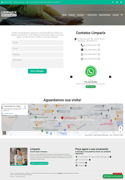 Com a função call to action no rodapé você poderá receber orçamento por formulário, contato por WhatsApp ou oferecer isca digital e capturar lead pelo MailChimp ou LeadLovers