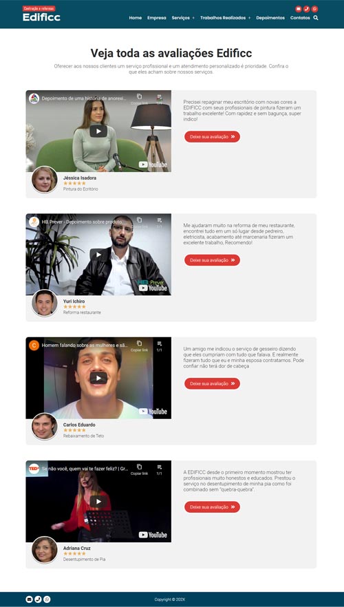 Mostre o que as pessoas que já fizeram negócio com sua empresa acham dela, e conquiste novos clientes. Você poderá cadastrar ilimitados depoimentos.