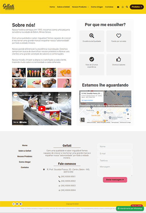 A plataforma foi desenvolvida para ser uma ferramenta de crescimento acelerado. Em apenas 2 minutos, você pode cadastrar novos sabores, preços e vídeos, integrando tudo diretamente ao seu WhatsApp para que o cliente faça o pedido instantaneamente. Além disso, o sistema conta com recursos avançados de SEO local, posicionando sua empresa no Google Maps e facilitando que o público encontre rotas, telefones e redes sociais com um único toque.
