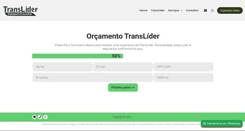 O grande diferencial estratégico deste projeto é o seu sistema de cotação online integrada, que permite ao seu cliente solicitar orçamentos detalhados diretamente pelo site, enviando as informações direto para o seu e-mail. Para acelerar o fechamento de negócios, o site conta com uma ferramenta completa de integração com WhatsApp, permitindo o cadastro de múltiplos atendentes, departamentos e horários de atendimento.